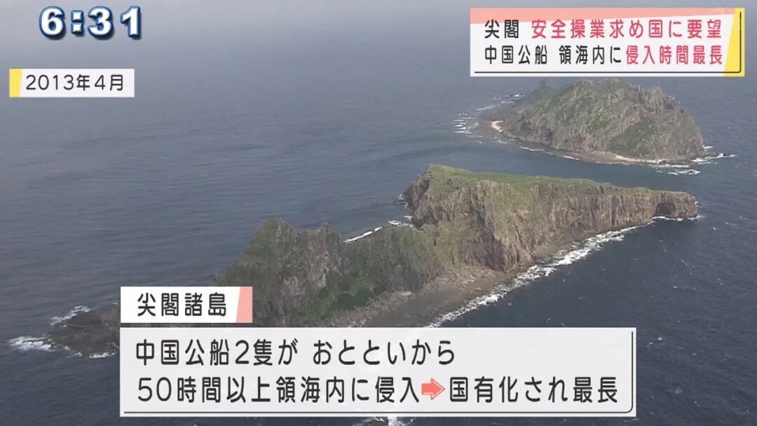 ●日媒:2013年4月,两艘中国公船入侵领海长达50小时。是岛屿国有化以来的最长入侵时间。