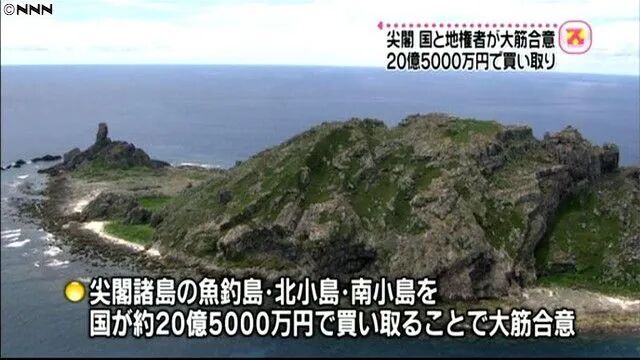 当时的日本首相野田(民主党)为压制住石原的“东京都买岛计划”,决定由国家出资20.5亿日元买岛。声称钓鱼岛属于日本国有领土。
