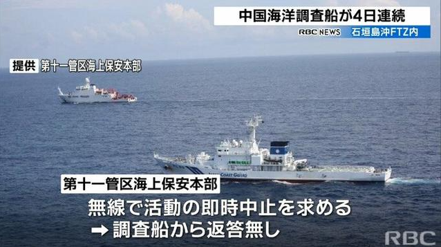 海上保安厅的巡视船通过无线,反复向“东方红3号”喊话,要求停止调查作业。但是“东方红3号”未予以任何回应。