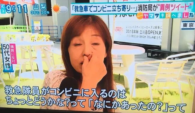 50多岁女性:一脸矫情地大惊小怪,说见到救急队员进便利店,人们会猜测发生什么事了,这令人不安。所以他们不应该进便利店。