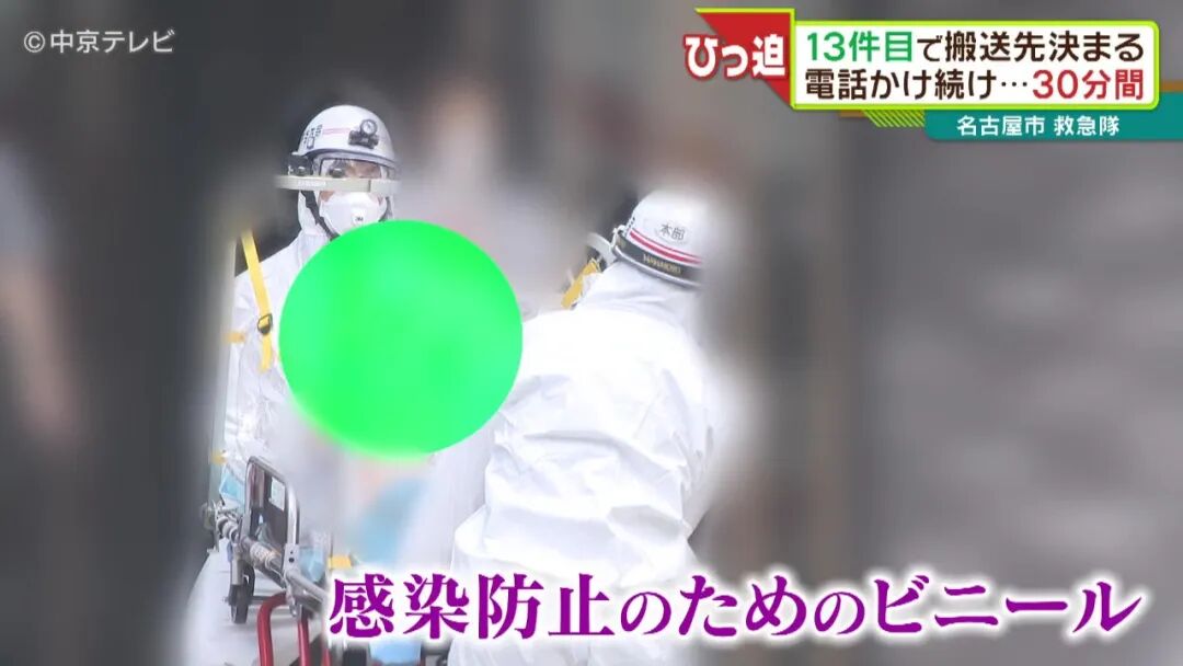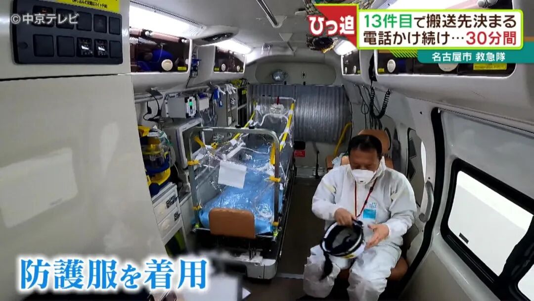 名古屋市北消防署接到求救电话,救护车赶赴现场。从电话里了解到求救女性的家人是新冠患者,她属于浓厚接触者,现在出现38℃的发烧症状。