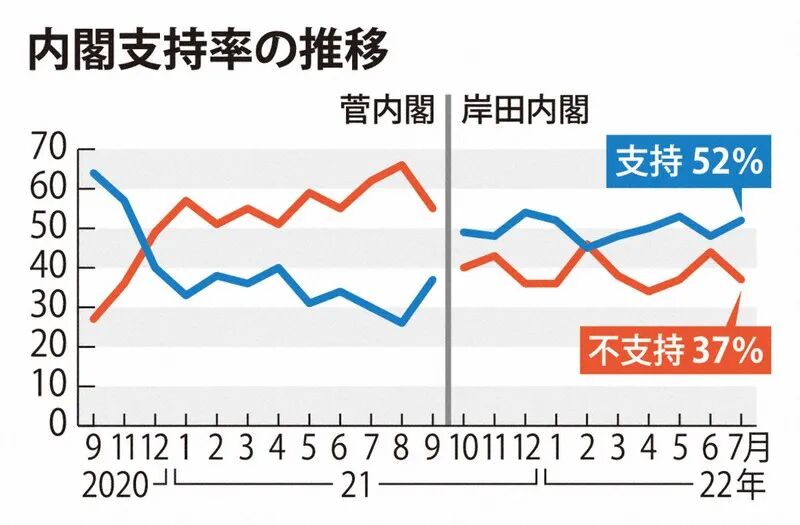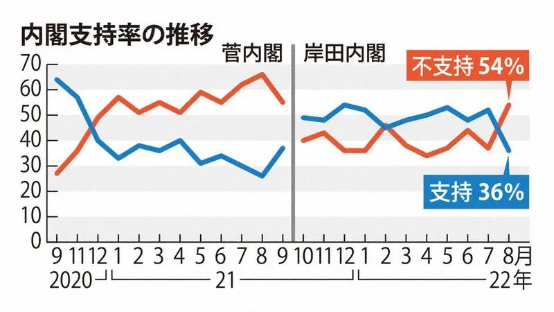 祸不单行,《每日新闻》的舆论调查最新数据显示:岸田文雄的内阁班子支持率36%,在持续急速下降的状态下,再再再创新低。这是岸田上台以来的最低支持率。