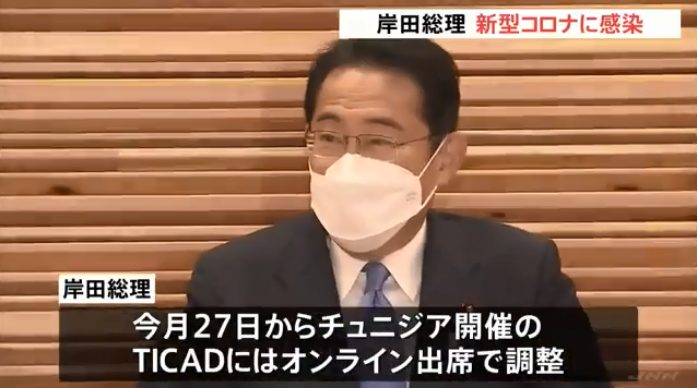 岸田文雄原计划将出访突尼斯,出席27日在当地召开的“非洲开发计划”会议。因感染新冠,取消出访,改为线上参加。