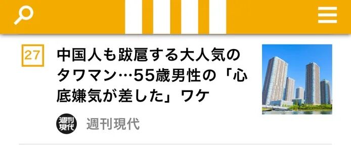 阅读排名榜第27位:中国人在大受欢迎的高层公寓也很跋扈,55岁男性“打心底里厌恶”的理由。