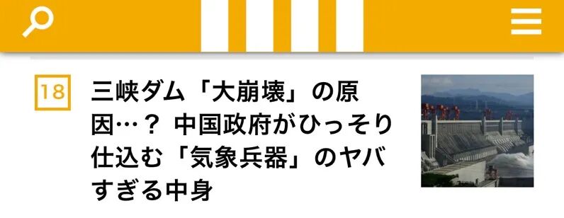 阅读排名榜第18名,日本人梦想着三峡大坝今年能“大崩坏”。