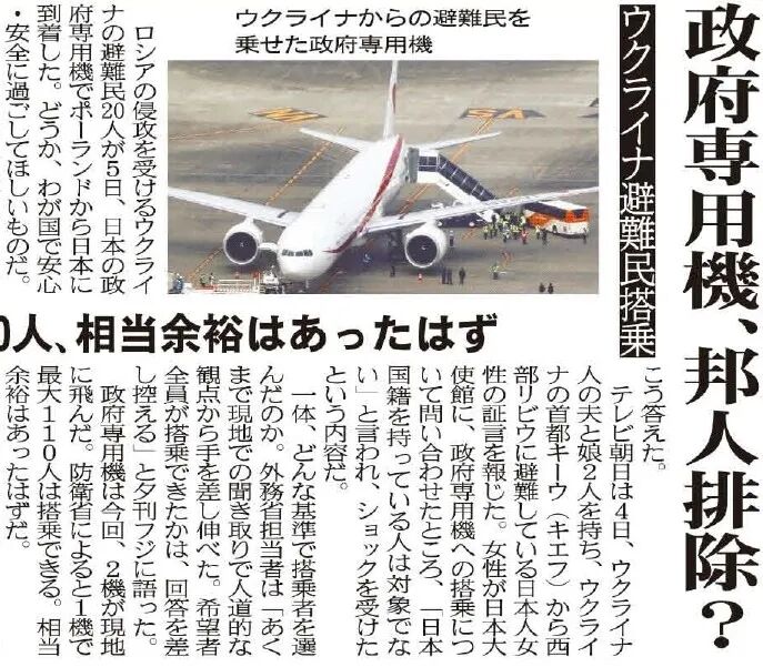 明明专机有100多个座位,乌克兰难民只有20人,剩下那么多空座位。可日本大使馆以“日本国籍不在对象范围”为由,拒绝了那位日本侨民的乘机申请。