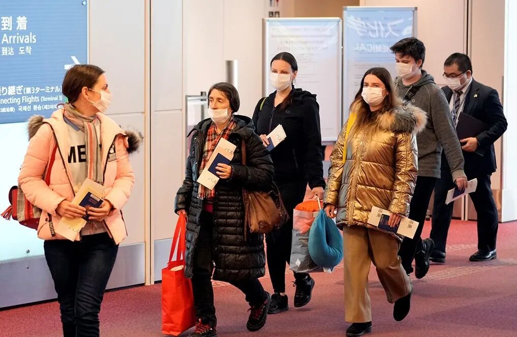 ▲日本政府专机接来的20名乌克兰难民