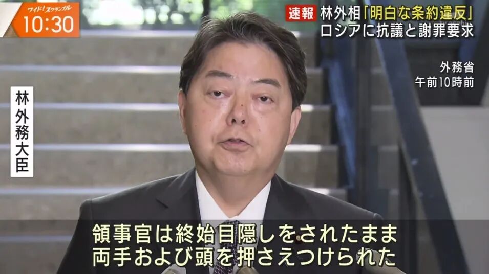 他称:俄方所主张的“违法内容”完全与事实不符。而且该日本领事自始至终是在被蒙住眼睛,头和双手被压制住,身体无法动弹的状态下,被俄方人员带走,并遭到威迫性质的审问。对此感到极为遗憾,决不能接受。