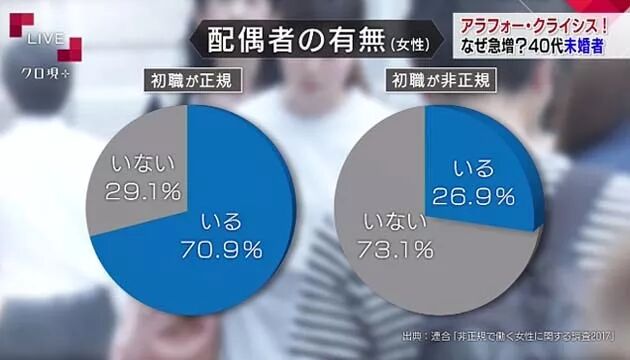 日本存在较多的“职场结婚”,女方若是那种干了一年半载就结束任期的临时工,她结识同公司的正式工男性,几率低得多。