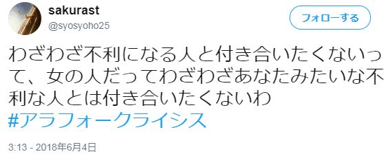 “(山口说)不想特地跟不利于自己的女人交往。”女人吧,也不会特地跟你这种条件不利于自己的男的交往。