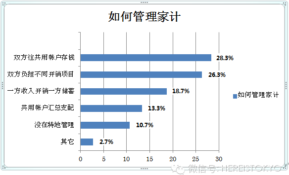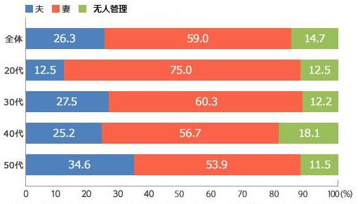 整体而言,主要由丈夫管钱的家庭占26.3%,而主要由妻子管钱的家庭则占了59%。从以前到现在,从日本到中国,“女的管钱”这一习惯似乎没怎么变过。