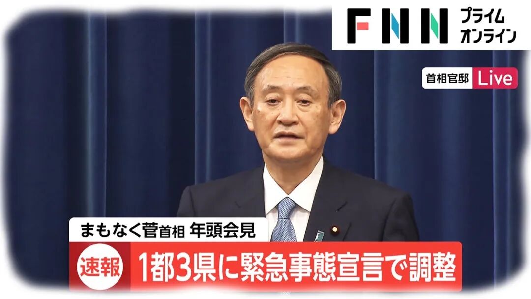 1月4日,日本首相菅义伟在首相官邸召开新年首次记者会。表明政府正在检讨,以东京都、神奈川县、千叶县、埼玉县为对象,再度发令“紧急事态宣言”。