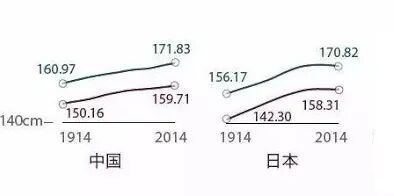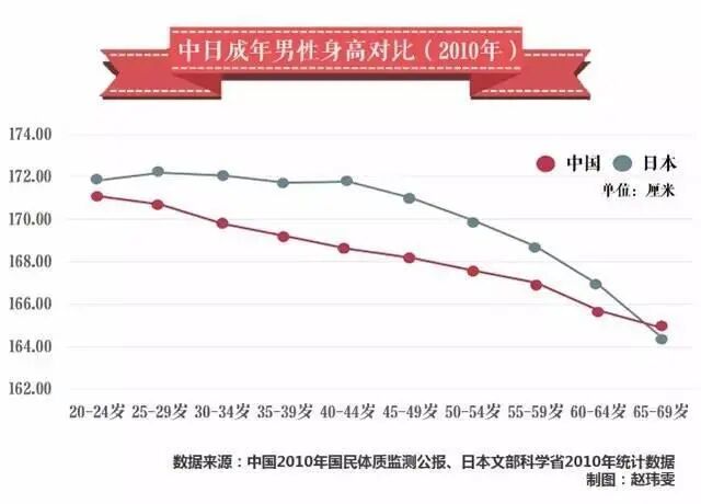 十年后,中国人平均身高反超日本。一方面是中国人的确长高了,另一方面是日本人越来越矮了。