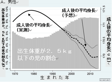 而根据以往的研究显示,出生时体重轻的人群,成年后有身高矮的倾向。这很可能就是造成日本人平均身高下降的一个原因。