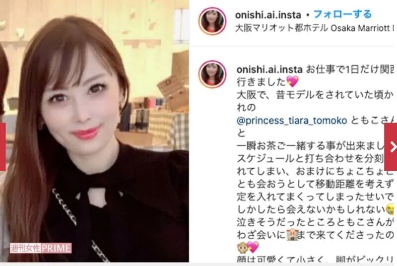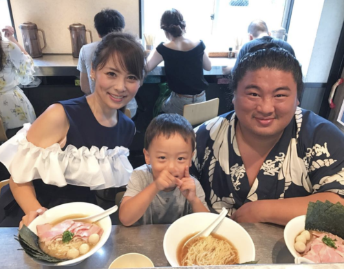 大西爱的另一个身份比较出名:前相扑手嘉风雅继的太太。
