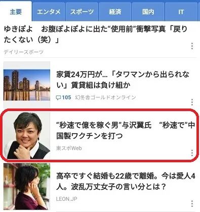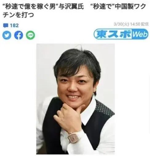与泽翼打中国疫苗一事被《东京体育报》报道了,然后迅速登上雅虎新闻头版:以秒速赚到上亿日元的男人与泽翼,以秒速打了中国疫苗。