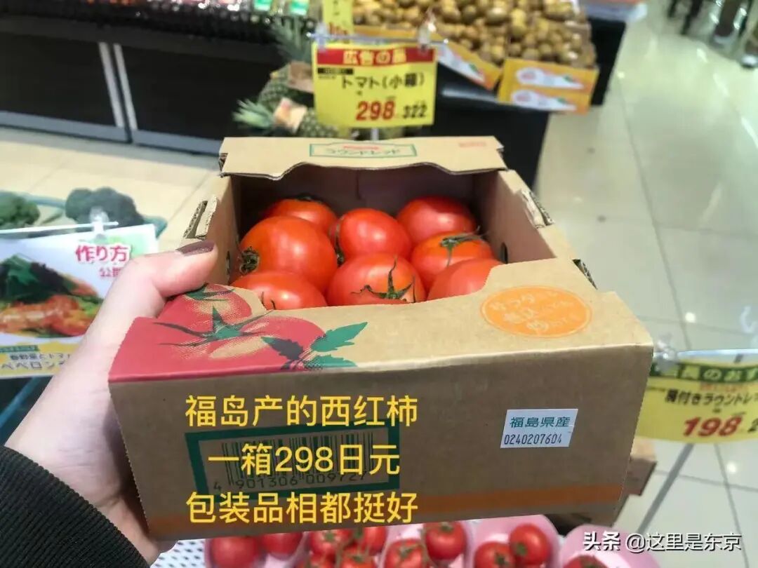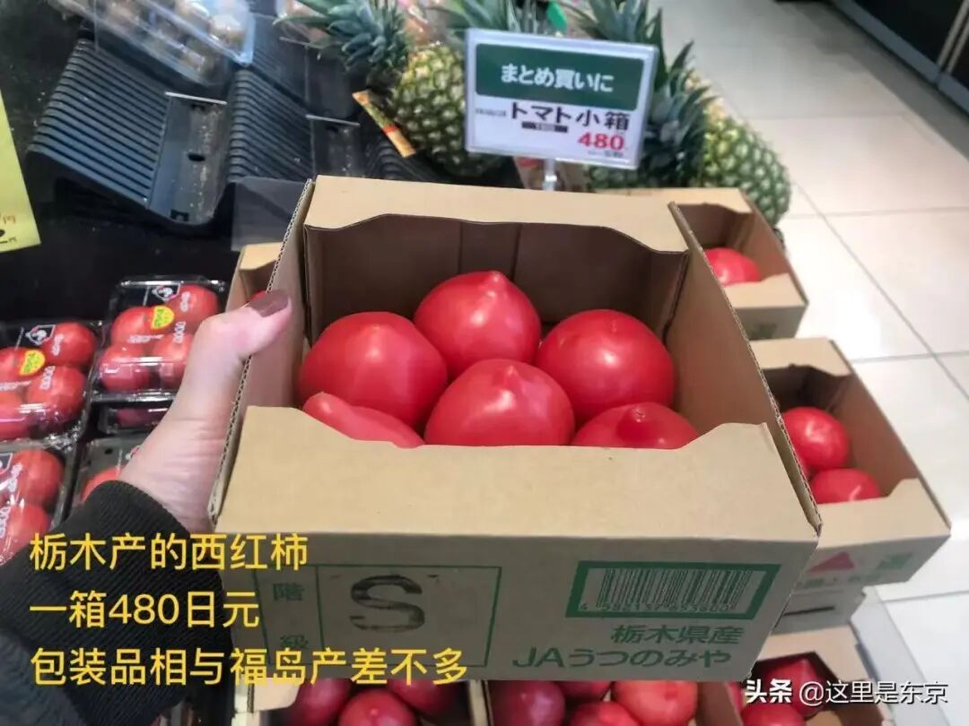 栃木产的西红柿,包装品相与福岛的差不多,一箱480日元。
