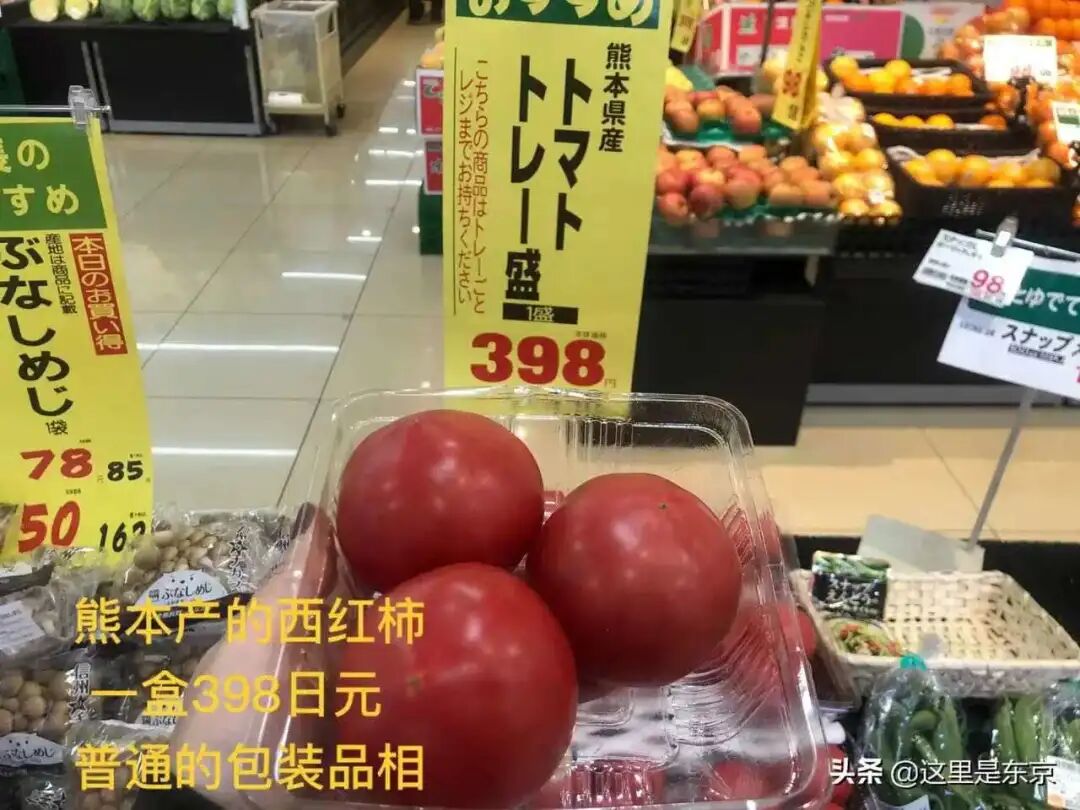 熊本产的西红柿,包装品相普通,一盒398日元。