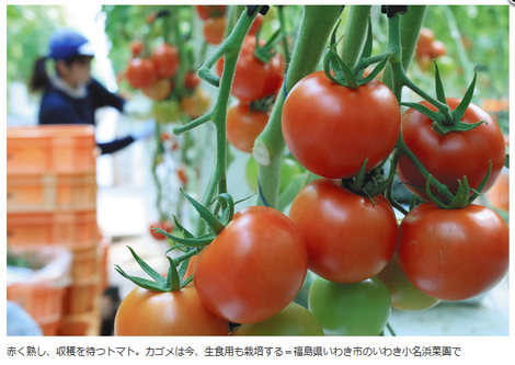 留意学校的给食菜单,311之后,流行自产自消,意思是本地产本地消耗。拒绝福岛,又不留话柄。于是,可果美的番茄供给福岛县内的学校使用。