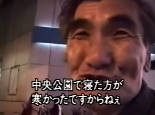 日本有很多跟踪拍摄的纪录片。其中有一部二十多年前,记录了经济不景气之下,东京的一对父子加入流浪汉行列,露宿新宿街头。