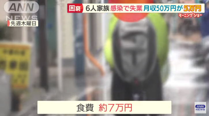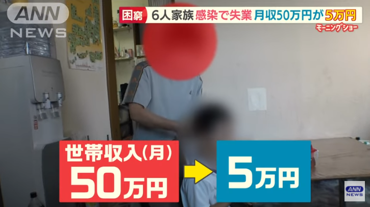 全家收入从疫情前的每月50万日元(折合人民币约3万),一下跌到了5万日元(折合人民币约3千)。