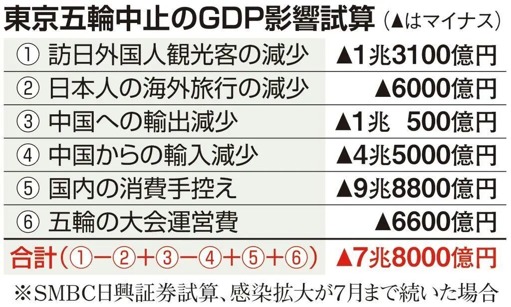 SMBC日兴证券演算出来的数据更吓人,中止召开奥运将导致7兆8000亿日元的损失……