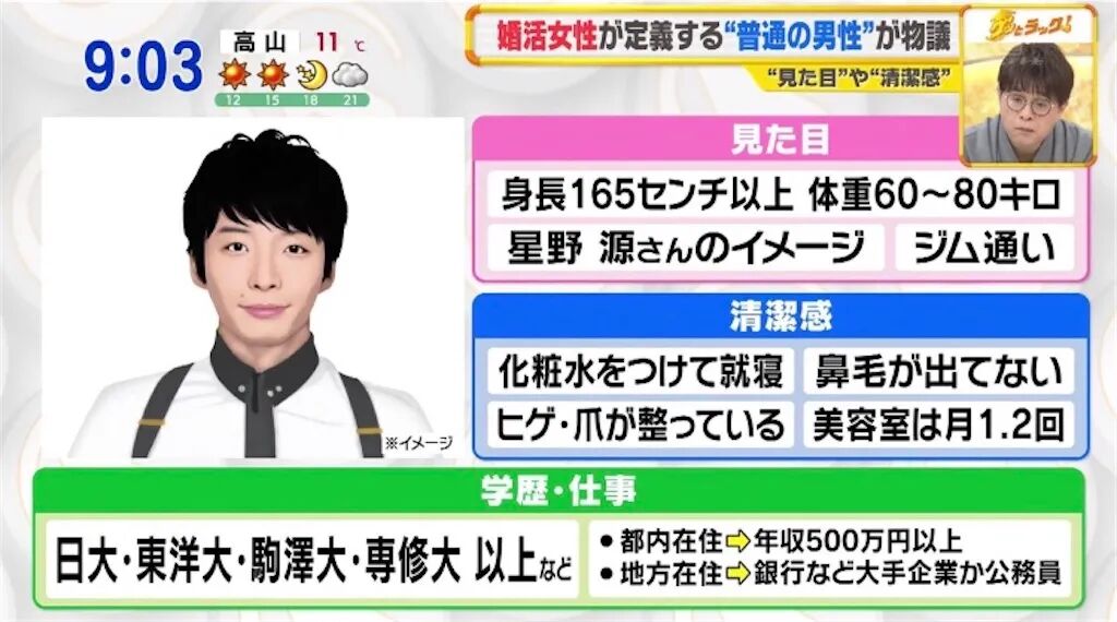 以东京女生为例,她们罗列出对男方的基本要求,认为每一条都极其普通: