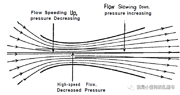 为什么机翼上方压力降低而在其下方压力增加?很多充满好奇心的读者依然会这样问。到目前为止,我们所说的归结起来只有下洗气流,这当然是一种解释方式。但也许更好的解释方式是类比。 这就不得不说一说大名鼎鼎的文丘里管了,如下图。