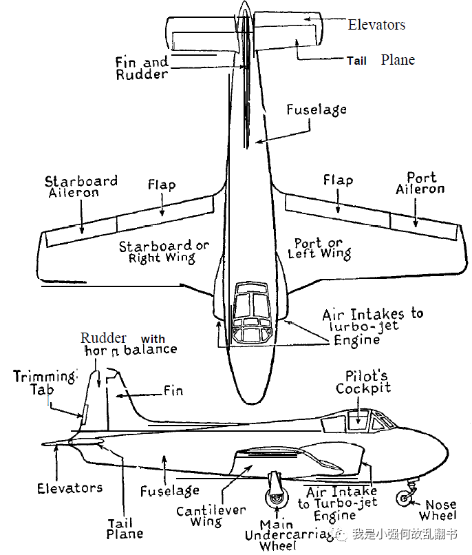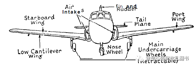 下图是飞机的主要组成部分,您可以多看几眼,对阅读本书大有裨益。【中文对照可以在图下方查看】