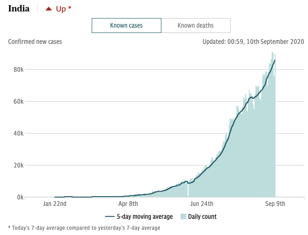 世界的累计确诊人数截止9月10日17:00超过2,812万例(+280k),死亡超过91.0万例(+7k)。