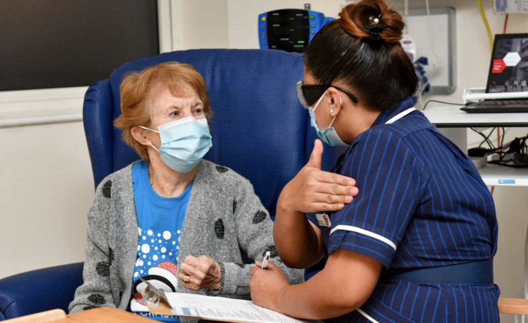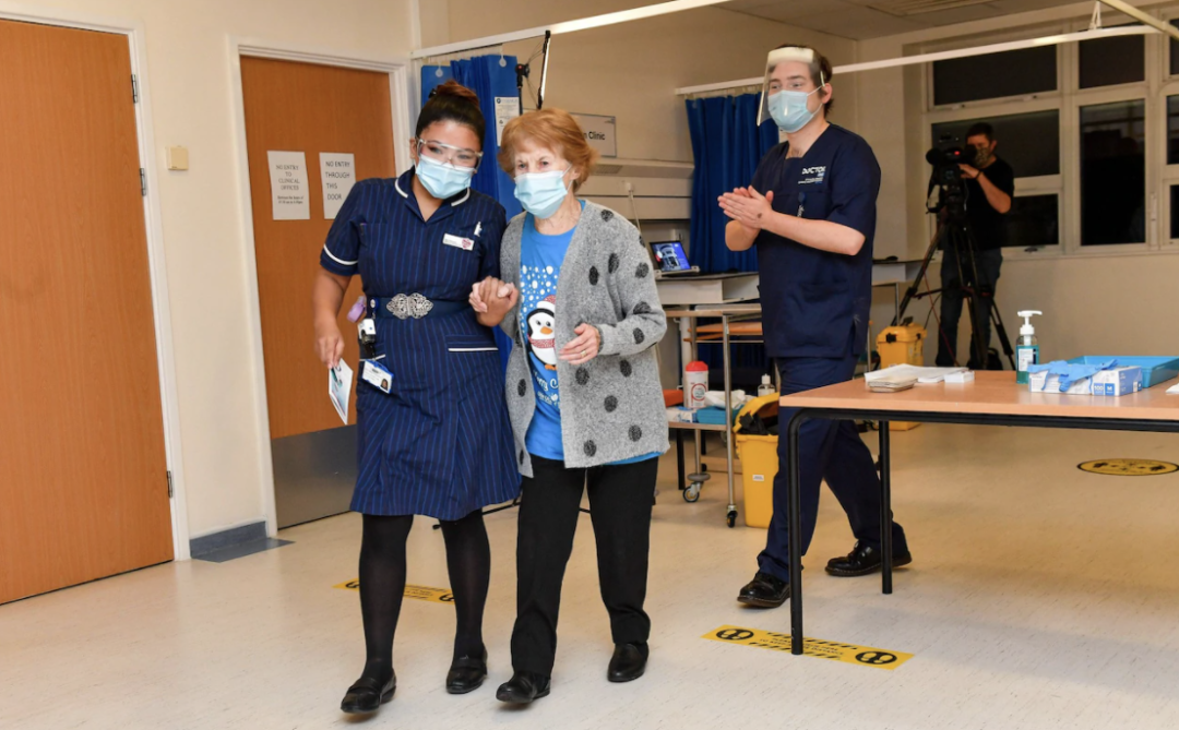12月8日(周二),Pfizer辉瑞的新冠疫苗在批准后终于在英国各地正式开始疫苗接种计划——现年90岁的祖母Margaret Keenan成为世界上第一个在疫苗接种计划中接受注射的人。
