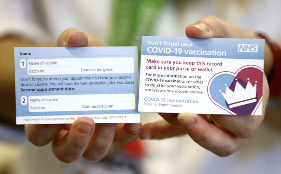 疫苗卡/疫苗贴纸|图片来源Sky News