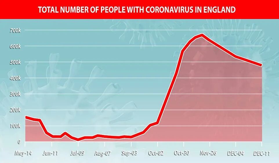 好消息是,国家统计局ONS发现,在英格兰第二次全国封锁的最后一周,感染率下降了近10%。它估计在截至12月5日的七天内,有48.15万名患者患有新冠,比前一周的52.13万名患者有所下降8%。