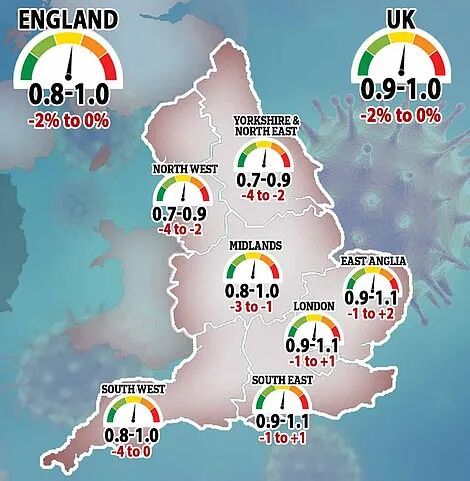 12月11日(周五),SAGE公布了新一周的新冠感染率R值数据——显示自10月以来的首次上升:估计英国各地的R值均在在0.9到1.0之间,从一周前的0.8上升到了1.0。