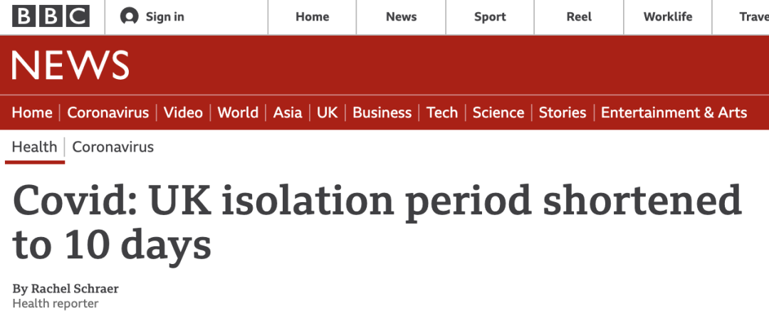 英国四个地区的四位首席医疗官CMO在一份声明中宣布了自我隔离规则的变化——「在审查证据后,我们现在有信心可将接触者自我隔离的天数从14日减少至10日,从不再安全名单的国家返回的人也只需隔离10日,而不是14日」