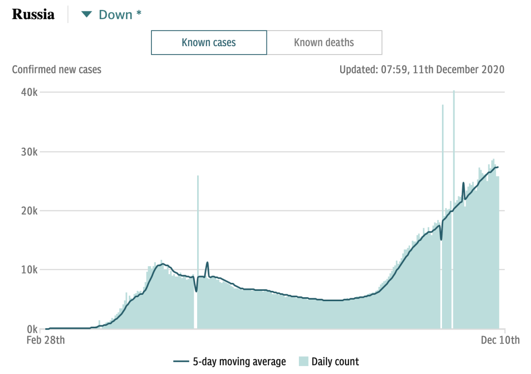 目前,俄罗斯总死亡人数为45,893人,而感染人数则跃升至2,597,711人,俄罗斯的病例从减缓到再次攀升,目前位居世界第四。