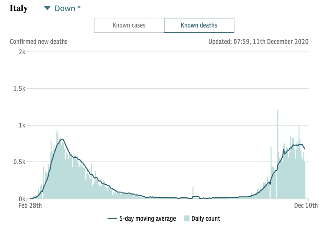 意大利是第一个受到病毒侵袭的西方国家,自2月份出现疫情以来,意大利累计病亡案例达到63,387名,是欧洲仅次于英国的第二高死亡人数。