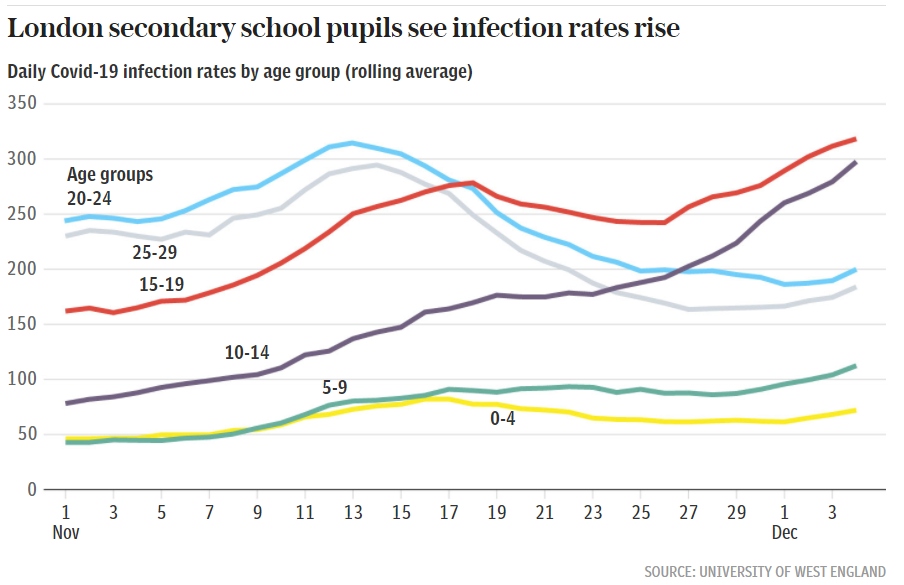 12月11日(周五),新增确诊数量最多的地点为伯明翰(+301)。