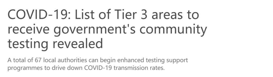英国政府希望该方案可以在新的一年向更多地区推广,并与现有的控制措施相结合,使Tier-3地区的情况可以得到缓解。