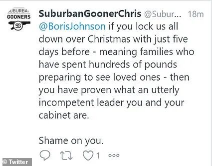 在英格兰其他地区,圣诞节的宽松活动受到了严重的限制,家庭只允许聚集一天,即圣诞节当天,而不是之前计划的五天。