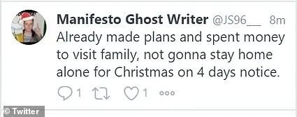 “早就做好了圣诞计划,所有东西和车票都买好了,我是绝对不会因为政府提前4天才通知而自己呆在家里的。”