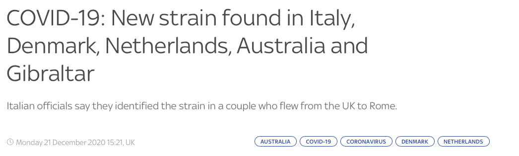 世界卫生组织(WHO)的COVID-19技术负责人Maria Van Kerkhove也在周日(12月20日)晚些时候证实了丹麦的9个病例以及意大利、直布罗陀、荷兰和澳大利亚的其他一些病例。