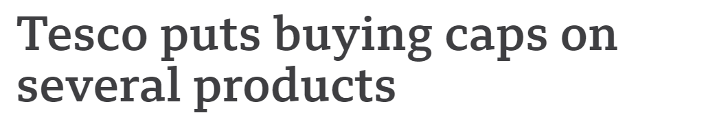 针对此次限购,Tesco表示其“库存充足",但为防止3月恐慌性大量购买重演,还是决定再次限购。