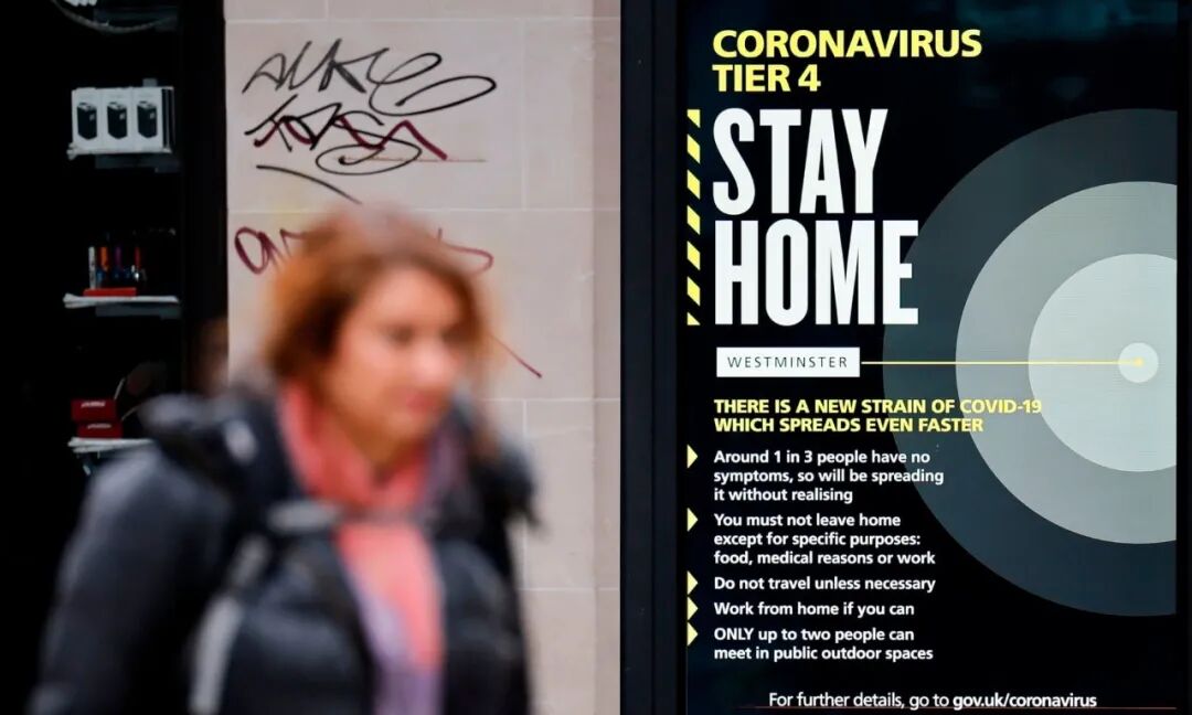 Nervtag咨询小组表示,它坚信新变种的传播性更强,这导致官方立刻对英格兰南部、东南部数百万英国人实施了4级最强封锁,要求待在家中。