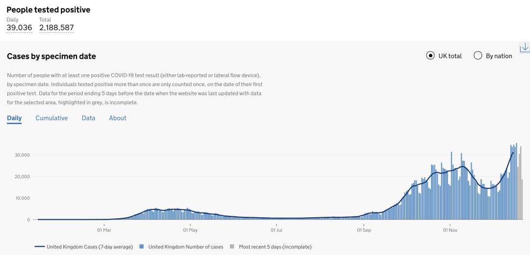 英国日增确诊案例趋势图