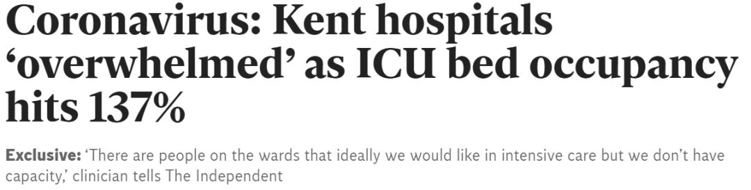 近日,有更多危重病人被转移到英格兰各地的医院,其中肯特地区的NHS信托机构报告称重症监护室的床位占用率在新年当天达到137%。