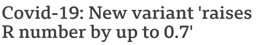 一项研究发现,新冠病毒变种比原始新冠病毒更易传播,可以使感染率R值提高0.4-0.7。目前英国最新的R值估计在1.1到1.3之间。只有R值低于1,病例数才会开始下降。