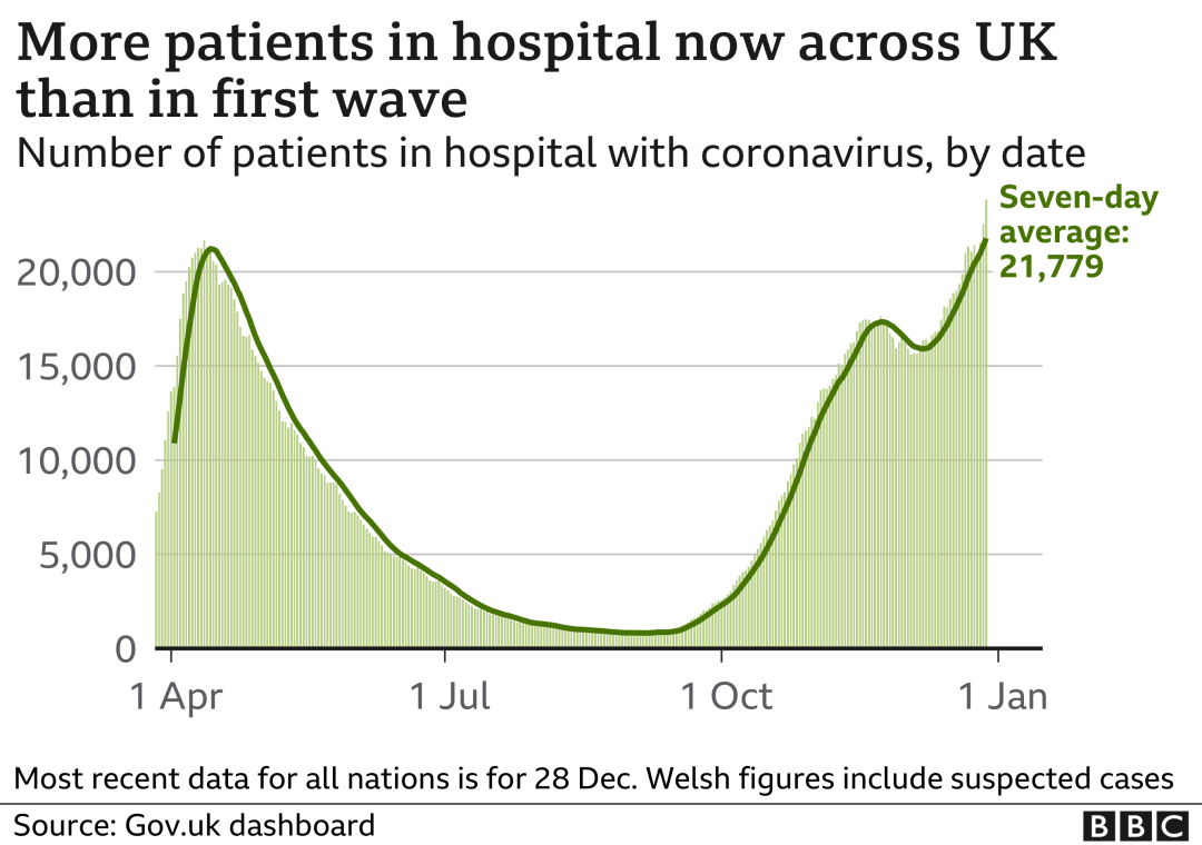 鲍里斯警告说:在新增确诊和住院人数激增的情况下,未来几周预计将是最困难的——目前医院正承受着新冠史无前例的压力,比3月封锁以来的任何时候都大"。