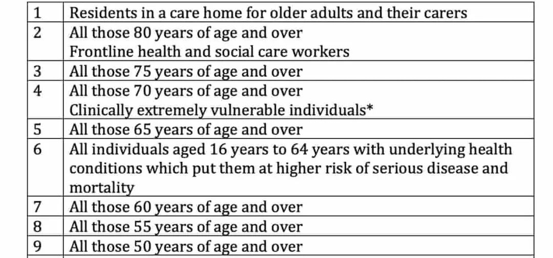 目前英国划分的九类优先接种人群