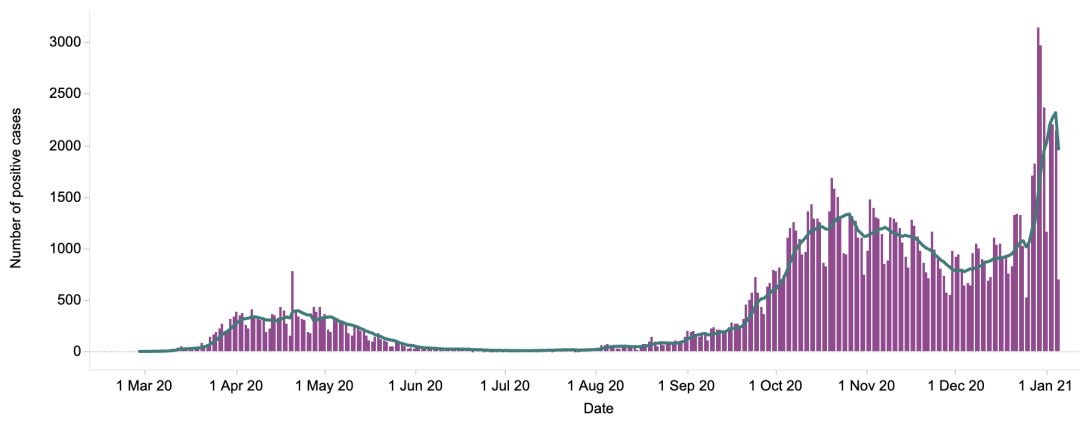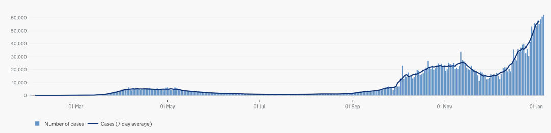 英国日增确诊案例趋势图